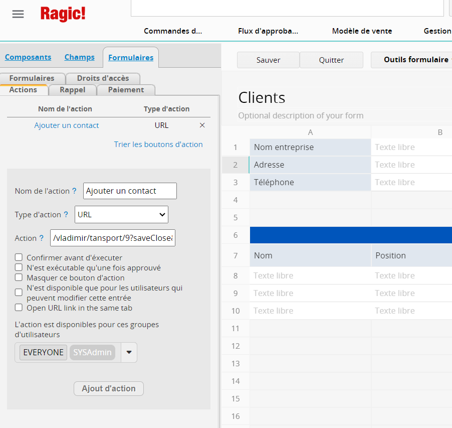 Pour cela, veuillez vous rendre dans le mode design de la page formulaire dans laquelle vous voulez ajouter le bouton d'action.