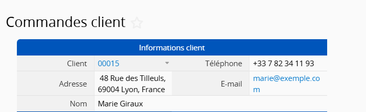 Dans la feuille "Commandes client", le nom du client est lié depuis la feuille Client. Cependant, comme plusieurs clients peuvent partager le même nom, il est préférable de remplacer le champ lié par "ID client", qui permet d’identifier les clients de manière plus fiable.