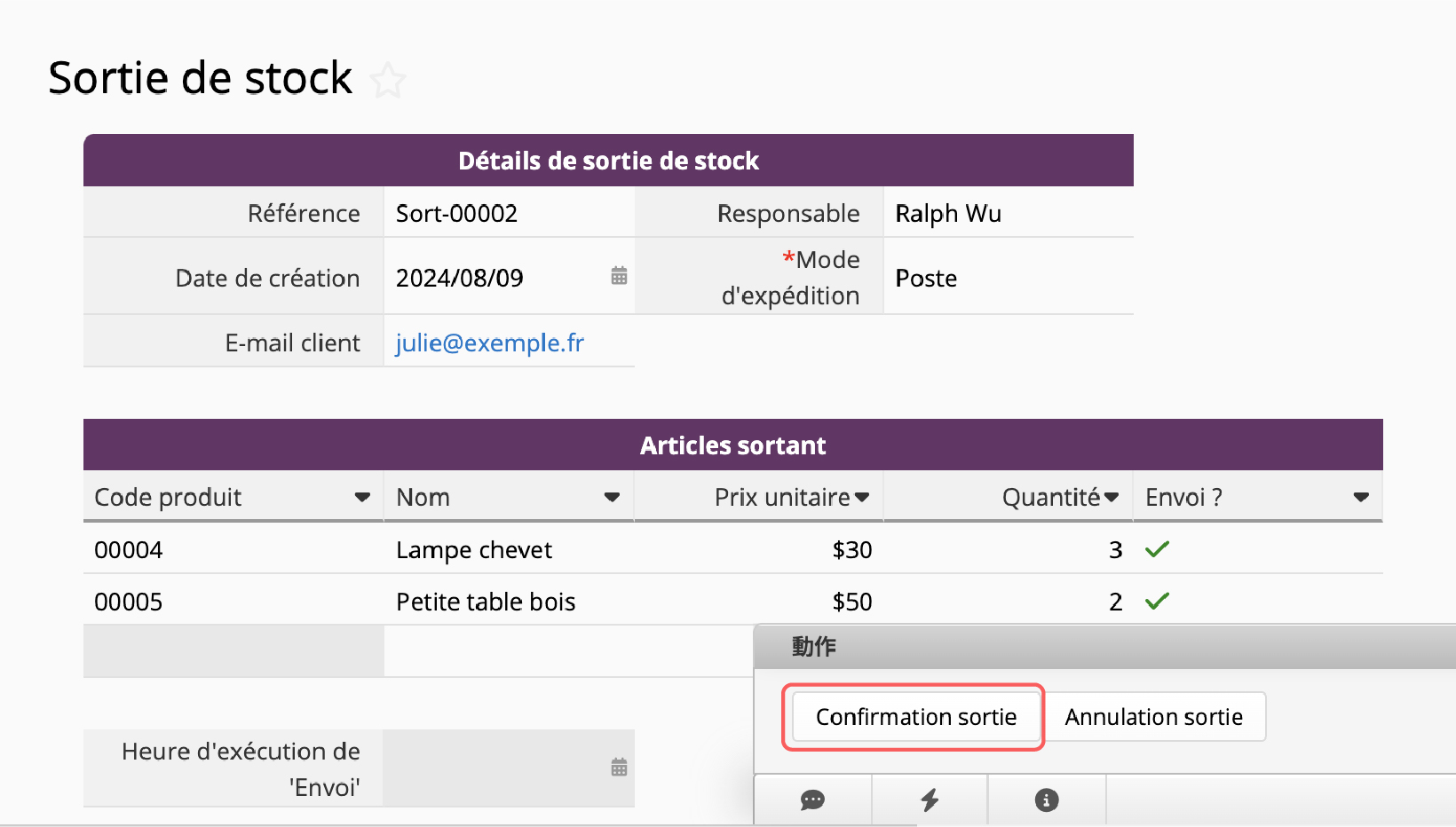 Par exemple, utilisez la "quantité expédiée" d'un bon de livraison pour déduire automatiquement la "quantité en stock" dans l'entrepôt. En savoir plus
