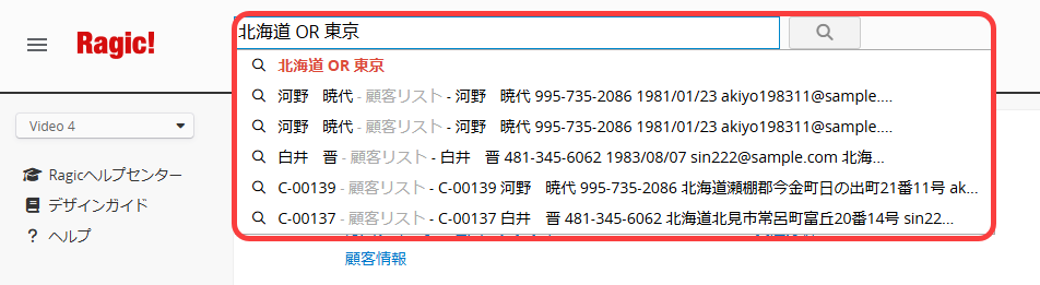 注:データベーストップページでは、操作全文検索の検索範囲はすべてのシートを含みますが、シート内にある場合は、操作全文検索の検索範囲はそのシートだけです。