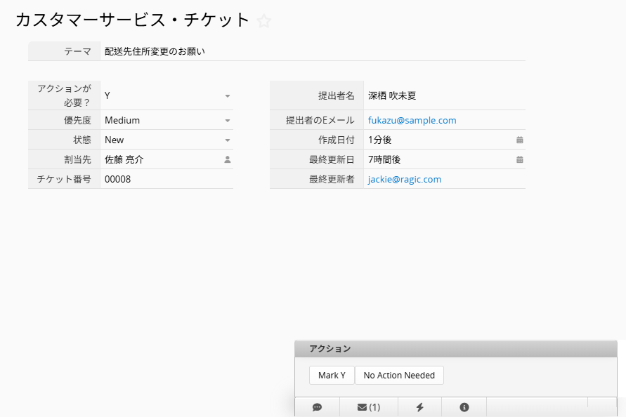 | email_updateDate | 1 | チケットの最終更新日がこのフィールドにマッピングされる |