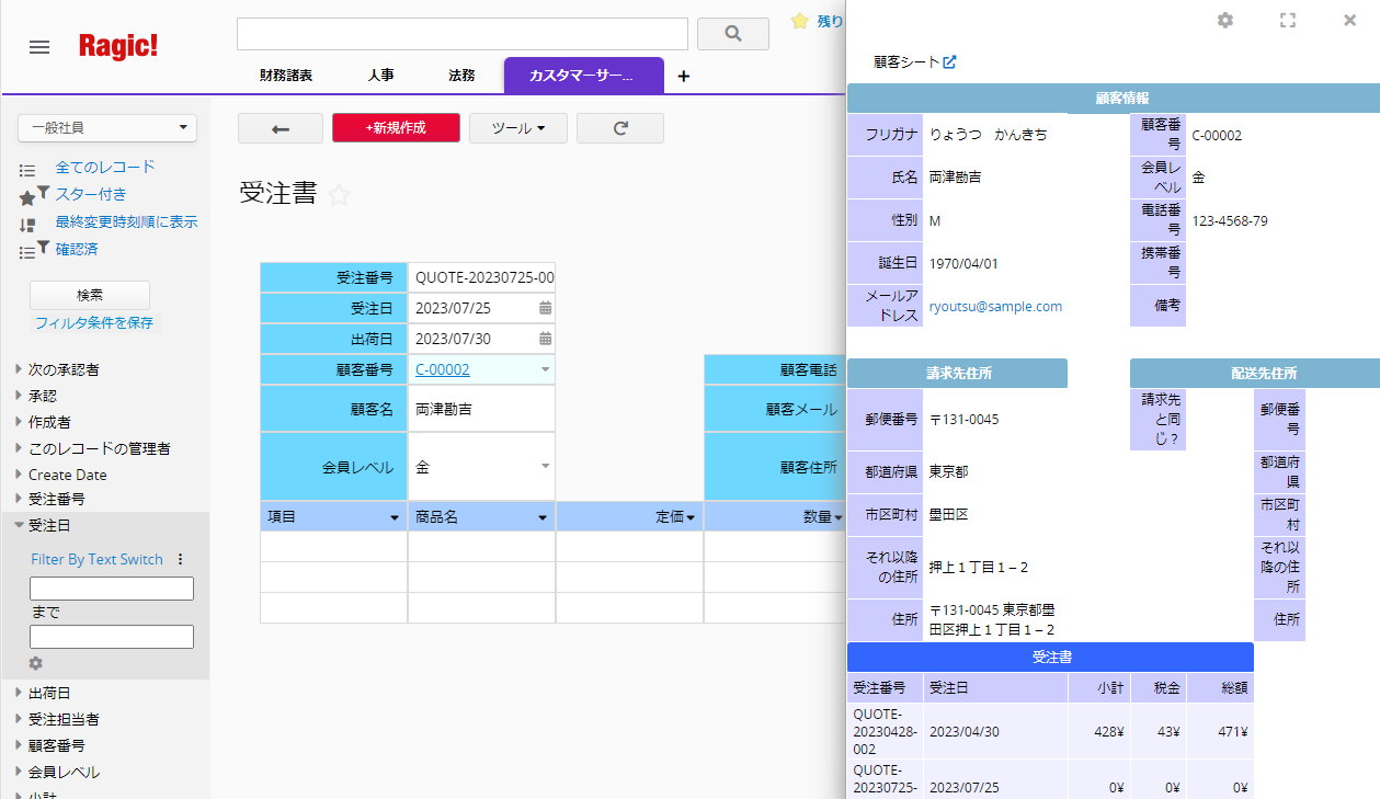 リンクフィールドや画像アップロードフィールドにカーソルを合わせると、画面右側にレコードのプレビューが表示されます。