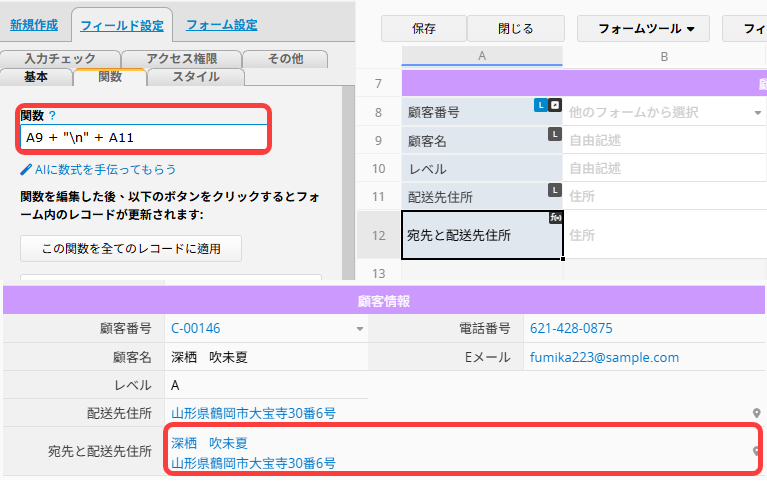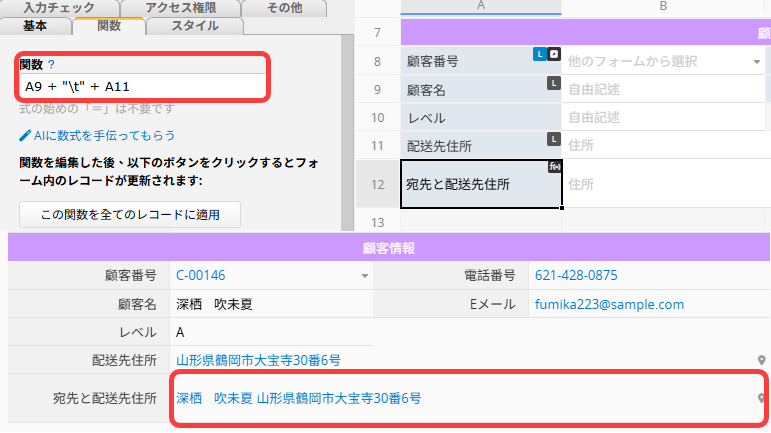 シート設計において、計算式は数値計算だけでなく、文字列の結合にもよく使用されます。