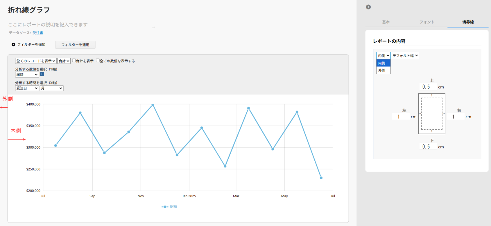 内側: 枠線とレポート内容の間の距離。
