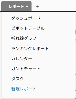 備考: フィルターの選択肢として表示されるのは、左サイドバーの検索ツール、リストページ、またはレポート保存時にレポート設定でプリセットフィルターとして設定されているフィールドのみです。
