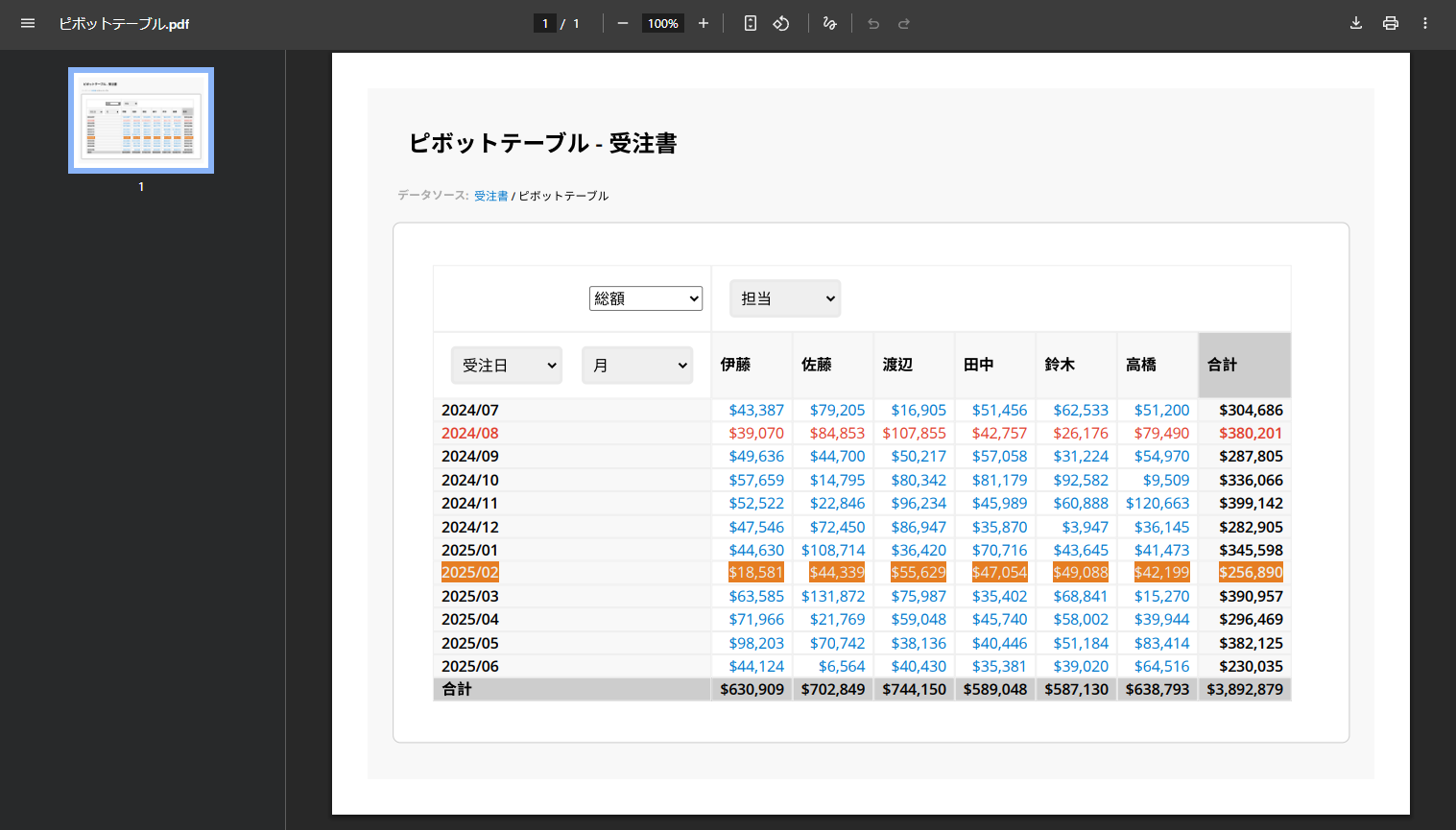 また、シートに 固定フィルター が適用されている場合、レポートにはフィルター後の結果のみが表示されます。