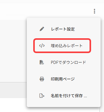 をクリックし、埋め込みレポート を選択してください。