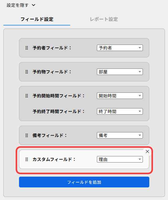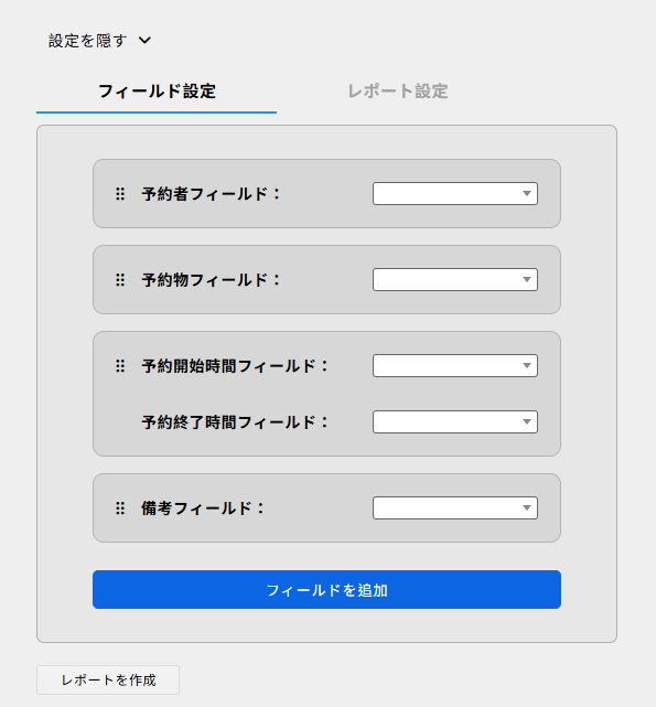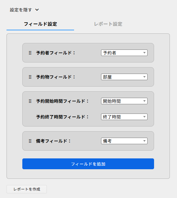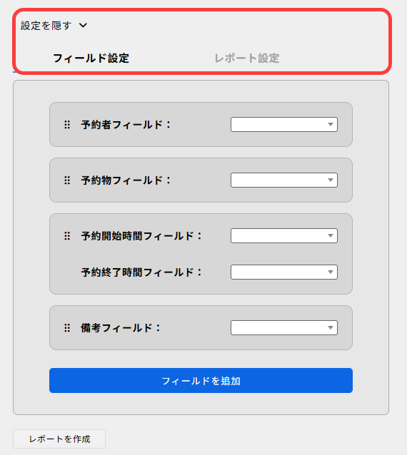 設定項目は、フィールド設定 と レポート設定 に分かれています。
