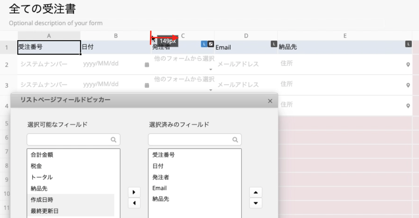 デザインモードでは、フィールドをドラッグで直接移動させることができます。 ヘッダーを長押ししてドラッグするだけです。