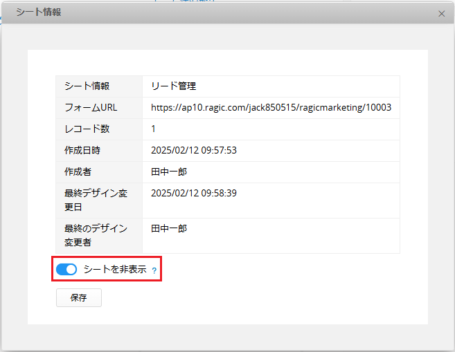 ユーザーは、その URL を使用してこのシートにアクセスできます。 リンク&読み込み機能でリンクされたシートである場合、これらの設定でもアクセス可能です。