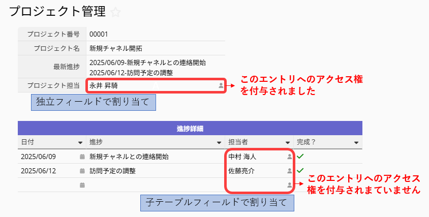 エントリーがユーザーに割り当てられると、そのユーザーは該当エントリーにアクセスできるようになります。