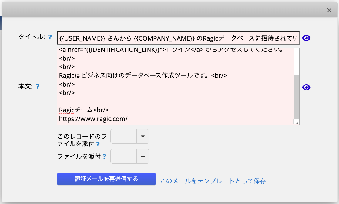 をクリックすると、編集が正しいかどうかを確認することができます。 ゼロから編集する場合、またはRagicのデフォルトのメール内容を使用する場合は、