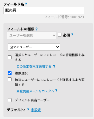 注意:チェックボックスフィールドの値は「文字列」として扱われます。そのため、数式を適用したり初期値を設定したりする際には、該当するチェックボックスの選択肢に対応する文字列を指定する必要があります。