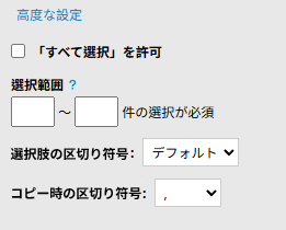 1. 「すべて選択」を許可:有効にすると、選択肢リストに「すべて選択」ボタンが表示され、すべての選択肢を一度に選択できます。