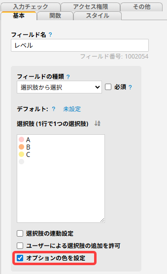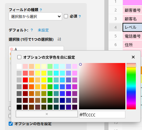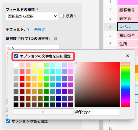 オプションをより簡単に識別したい場合は、選択肢フィールドのオプション色設定を参照してください。