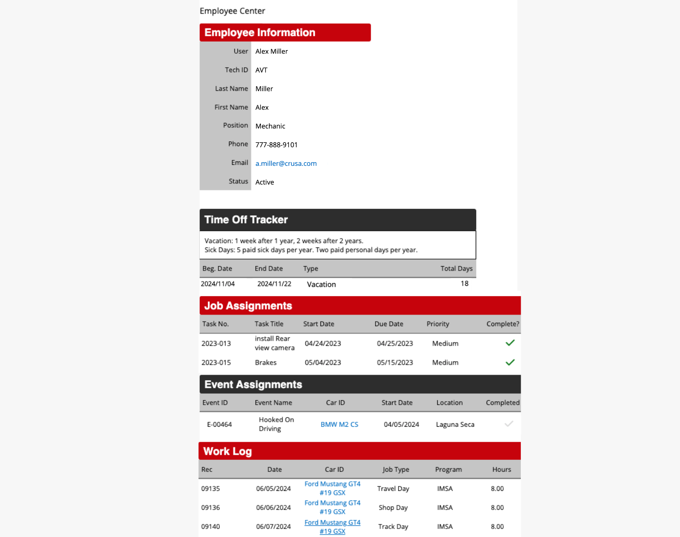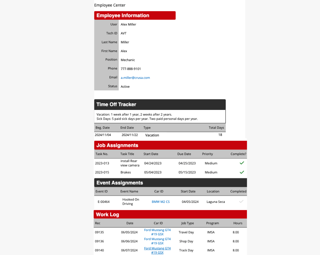 Steve 和其他团队成员大大受益于 Ragic 的手机 App。“我们有一半的团队成员会随着 IMSA 卡车(国际赛车运动协会的卡车)旅行,五月前往东岸,直到十月才会回来。他们可能会在当地待上几周,甚至一个半月,中间只会短暂回家休息几次。”