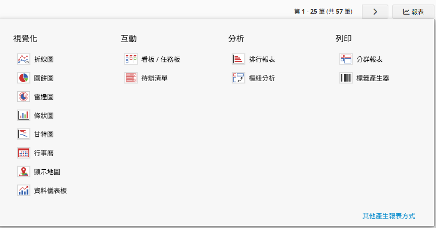 Ragic 提供多种类型的报表让你依照不同需求,选择适合的报表来分析统计表单里的数据。