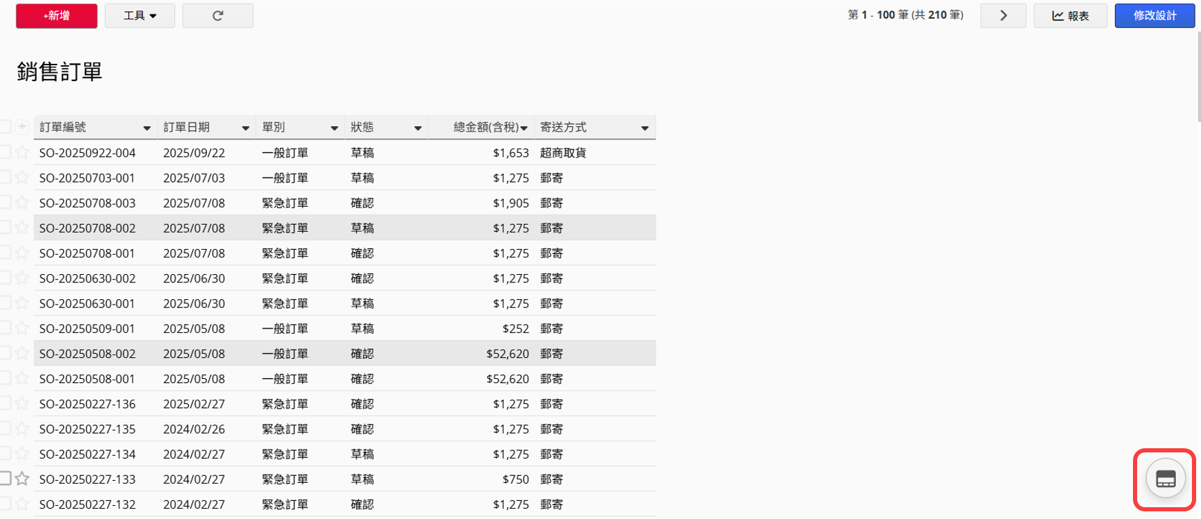 单击下方的结束便会看到报表的单击纽新增于右下角的位置,即可开始使用客制打印报表。
