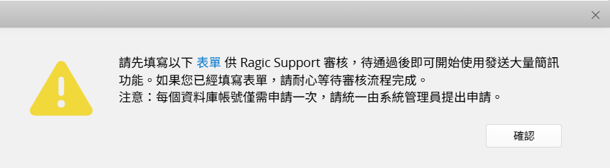 选择 SMS 短信后,如果是第一次使用传送短信功能的话会需要先填写表单经过审核确认短信目的正当。