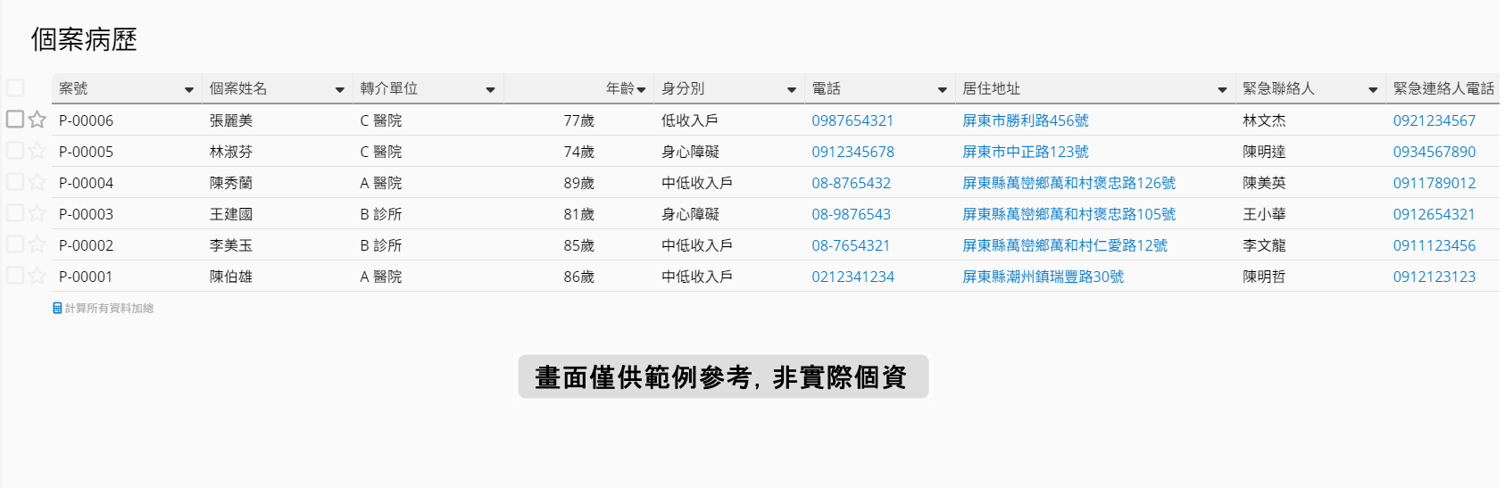 使用 Ragic 的另一個優點在於個案管理的資料整合。黃瓊珠解釋,許多個案會使用不同的醫療資源,例如專門的家庭醫師、延緩失能的醫師,或是健保或長照 2.0 的資源。以往使用 Excel 難以統整這些分散的資料,但 Ragic 的子表格功能,讓這一切變得簡單有條理。