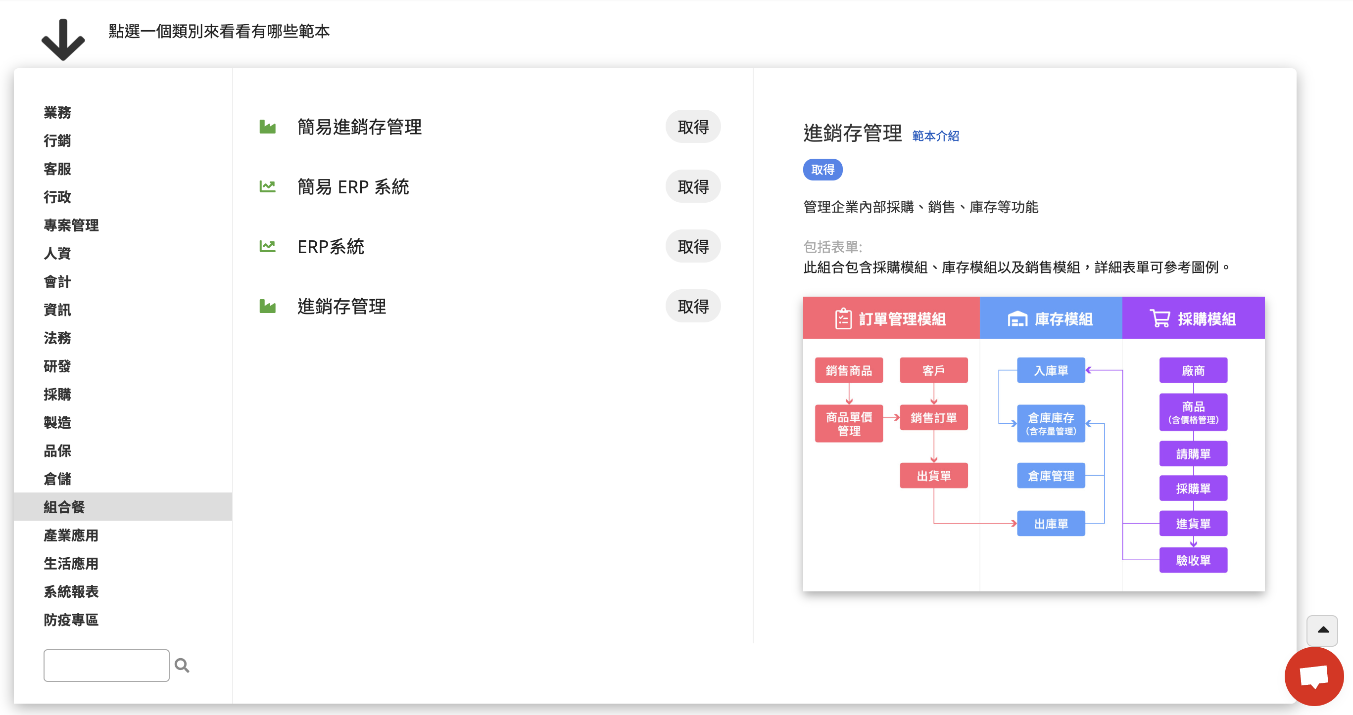 還沒有註冊過 Ragic 帳號的話,可以直接點此連結單獨安裝訂單管理範本,或點此連結安裝整個進銷存模組。(若已經是 Ragic 用戶,可以在應用商店的「組合餐」類別找到進銷存模組並下載。)