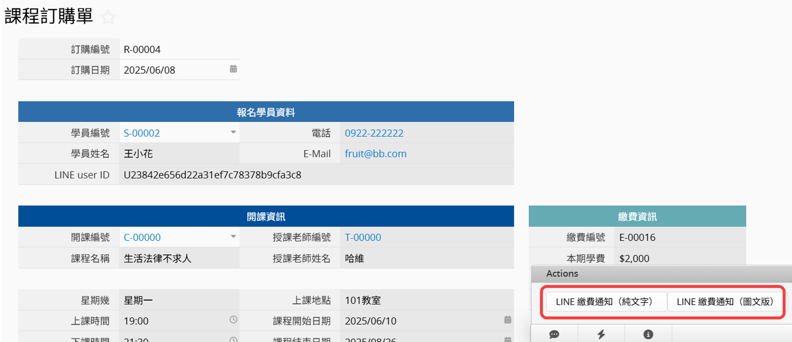 在進階設定中可以勾選儲存時自動執行。預設只有第一次新增時自動執行傳送訊息,若希望每次儲存資料(包括新增及修改資料)都自動傳送訊息的話,可以取消勾選此設定。