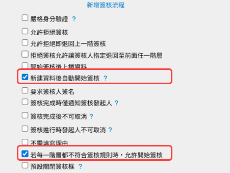 勾選後,不符合規則的資料仍然可以開始簽核並讓使用者決定是否要完成簽核。