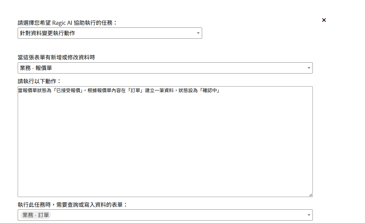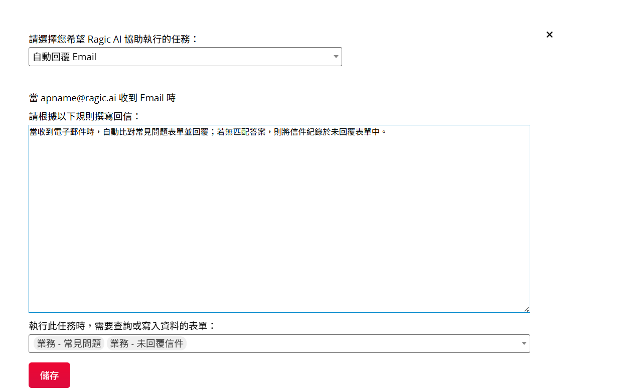 儲存後,Ragic AI 將依據所設定的規則自動執行任務。