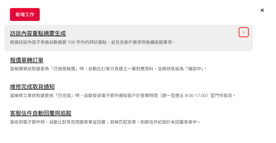 點擊新增工作