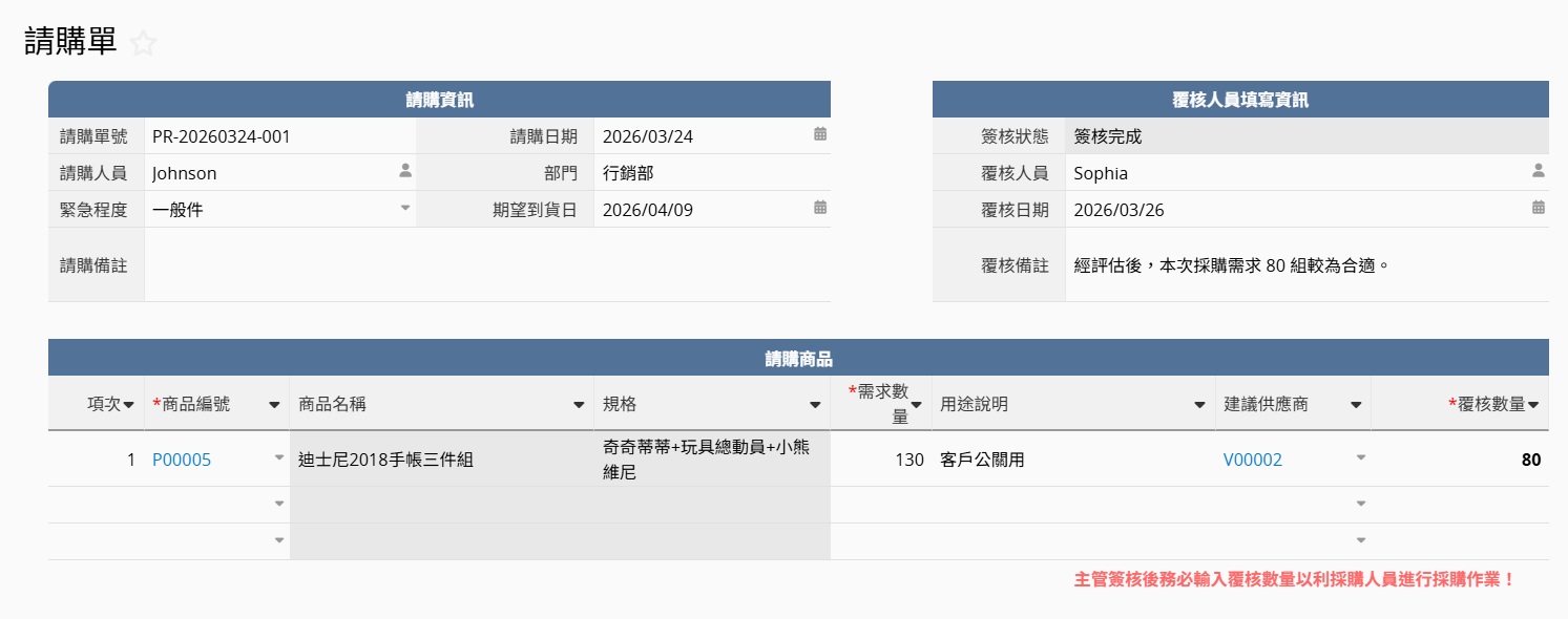 請購單這個步驟主要是為了確保在正式動用資金之前,所有採購需求都經過規劃與合理評估,並符合公司的預算控管。