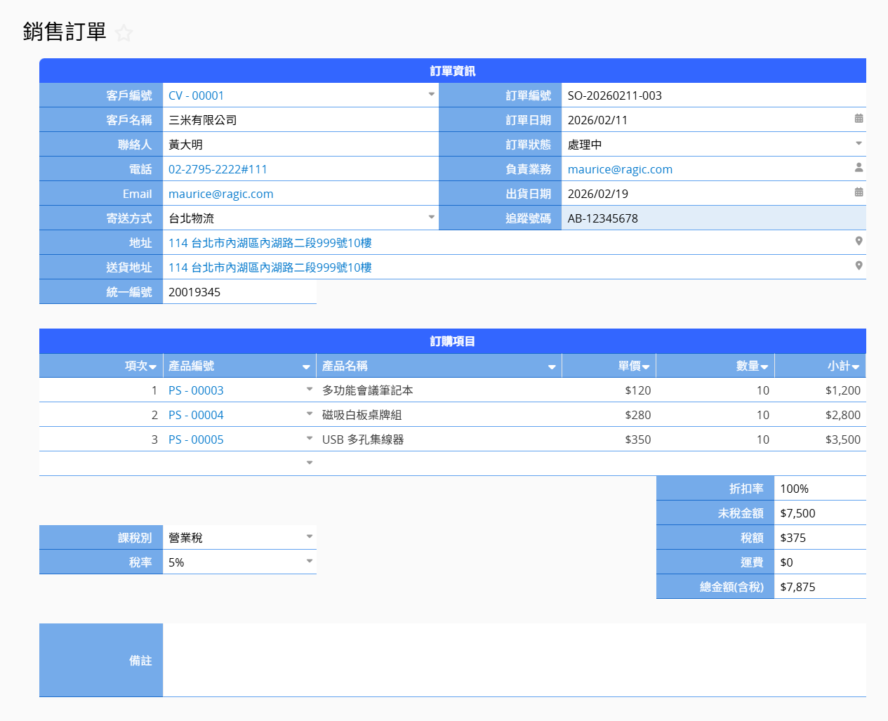 銷售訂單是在商品或服務尚未交付前建立的文件,通常用於公司內部來啟動備貨、服務、出貨或生產等作業。